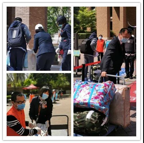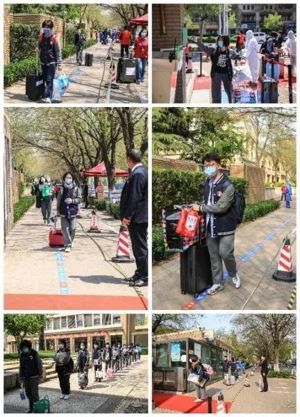 4月13日,開學第一天,全校初三學生在學校志愿者和珠江物業服務團隊的引導下,在校門口排好隊,前后保持一米距離,有序進入測溫區,刷卡進校。秩序組維持道路交通秩序,避免交叉擁堵,確保學生安全、平穩、有序地進入校園。入校時,行李組會將學生們的大件物品送至學生宿舍,讓他們沒有后顧之憂。